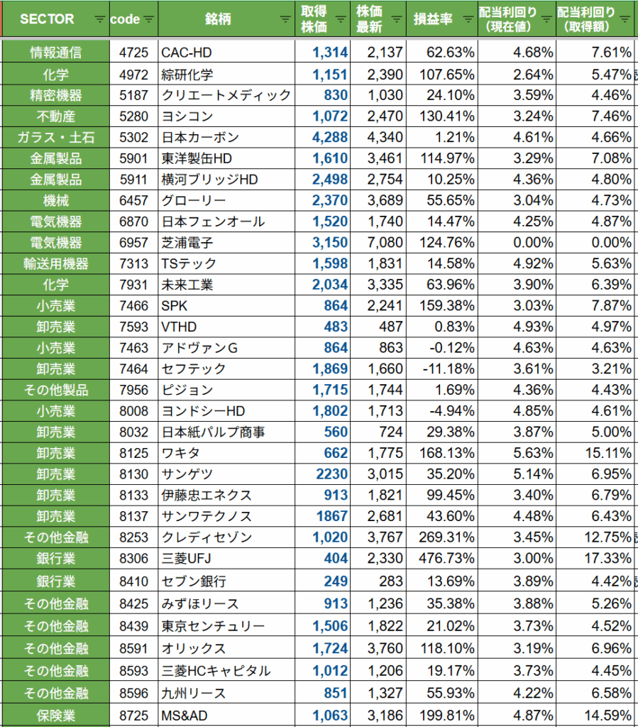 Follow @okiraku_tohshi現時点での日本株高配当PF