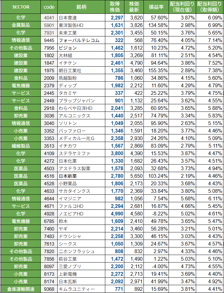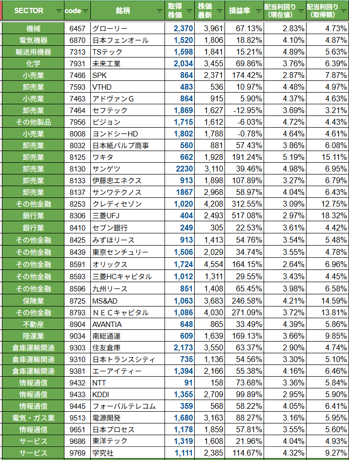 Follow @okiraku_tohshi現時点での日本株高配当PF