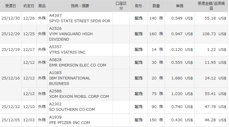 2025年以降、株高で投資をセーブしていた米国高配当株ですが、2026年以降の配当金増に向けて少しづつ買い入れ。