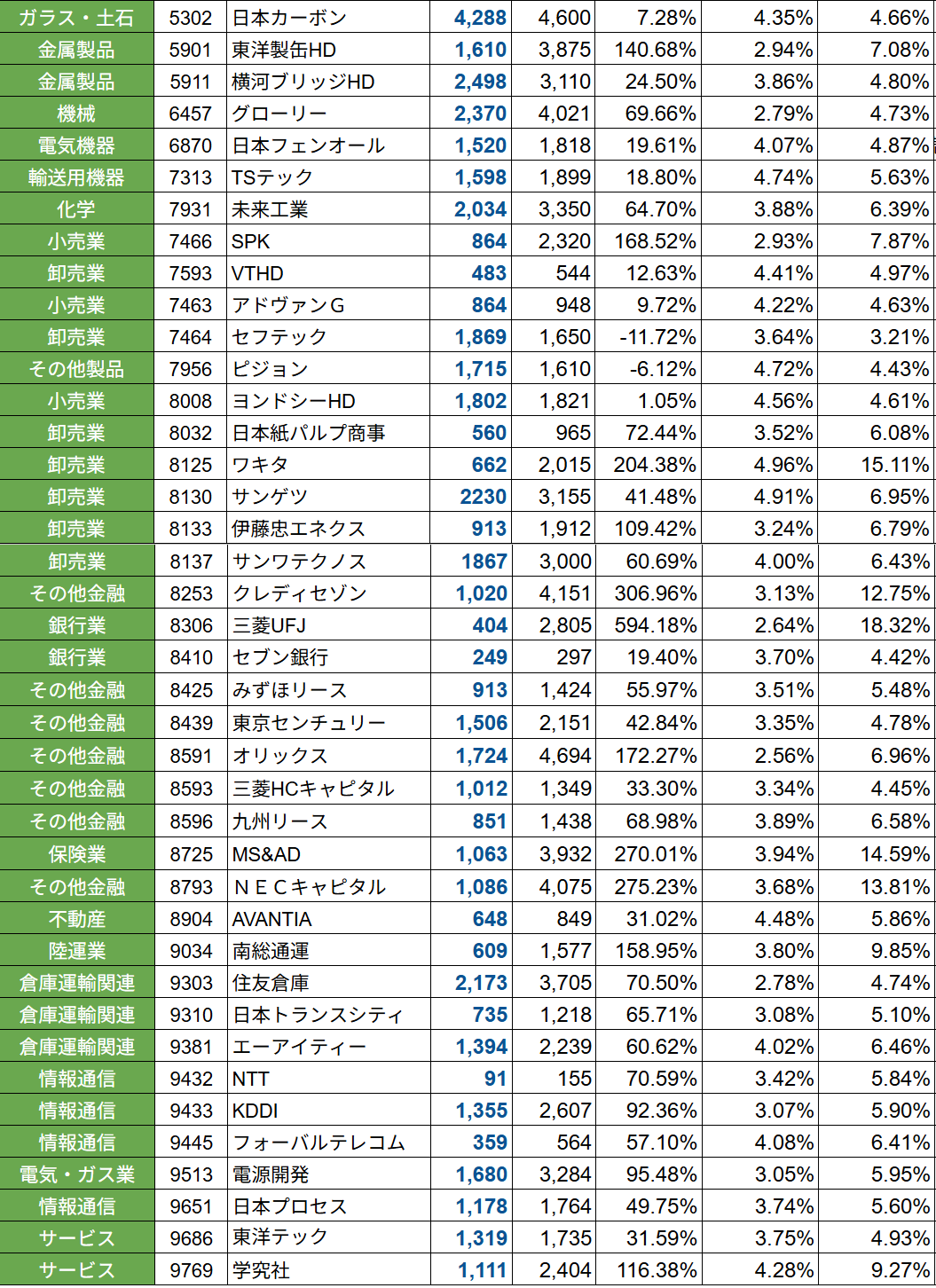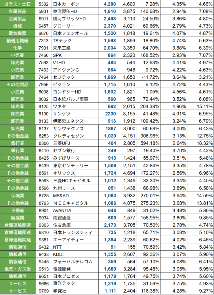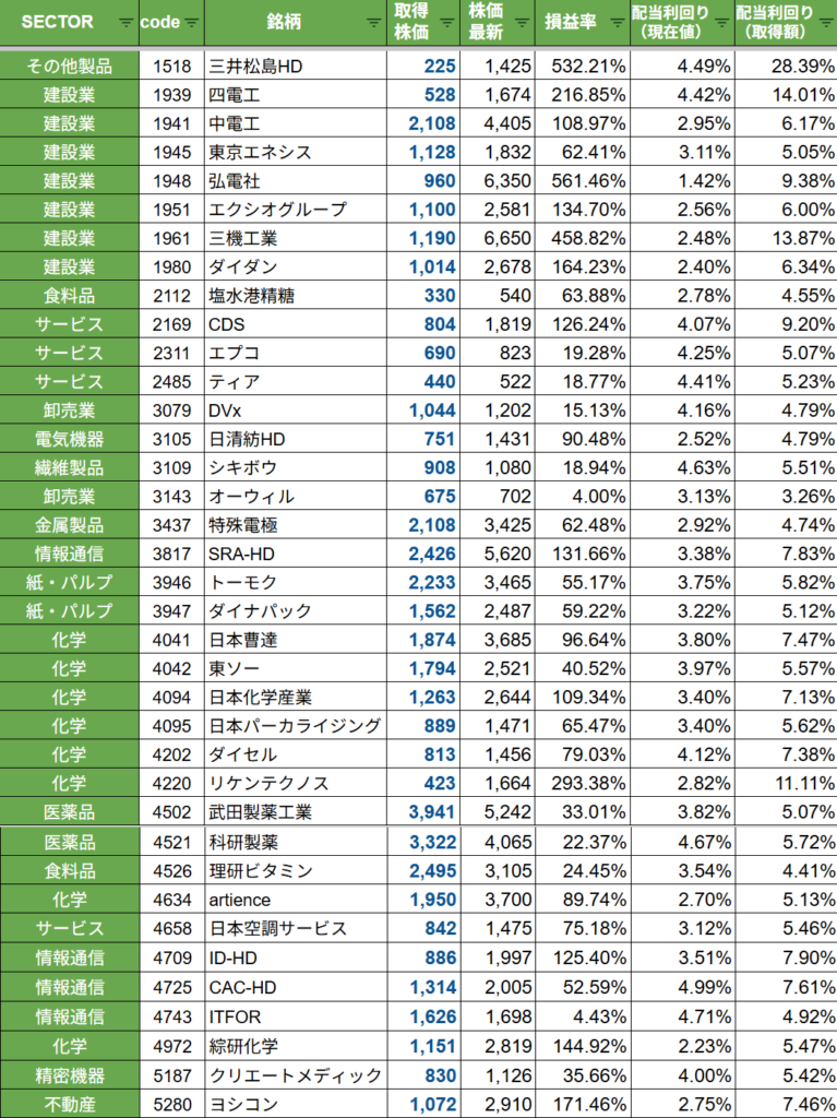 現時点での日本株高配当PF