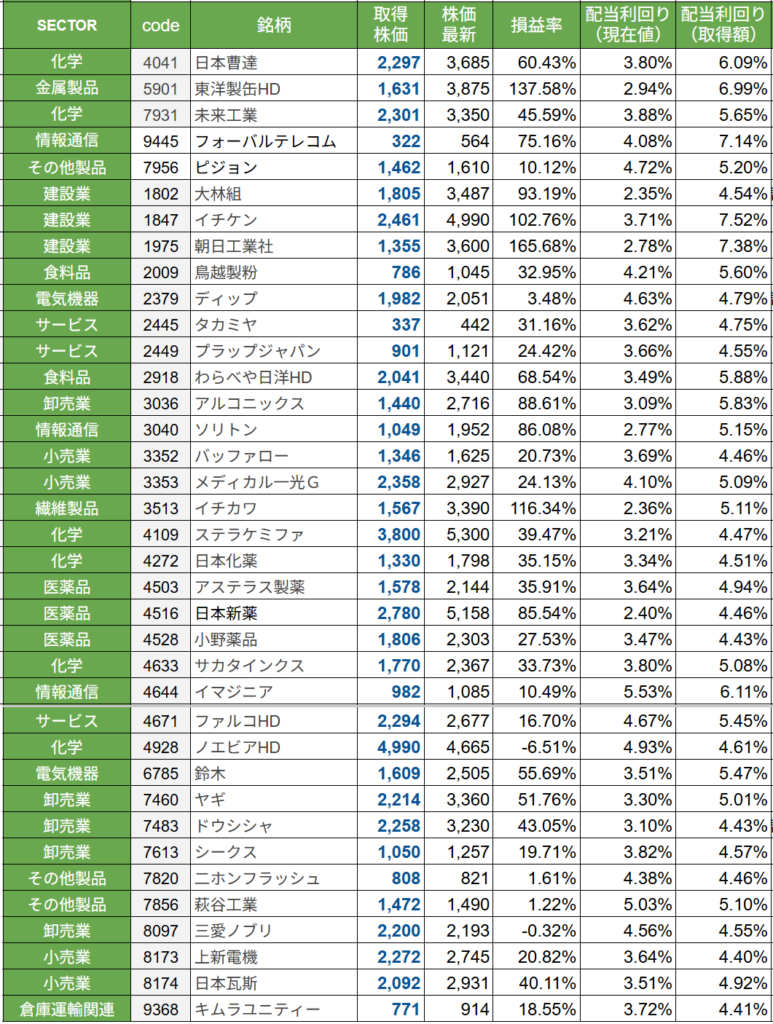 一方で、株価が堅調な分、高配当株を仕込むことはできませんでした。この辺りは今後の課題となりそうです。