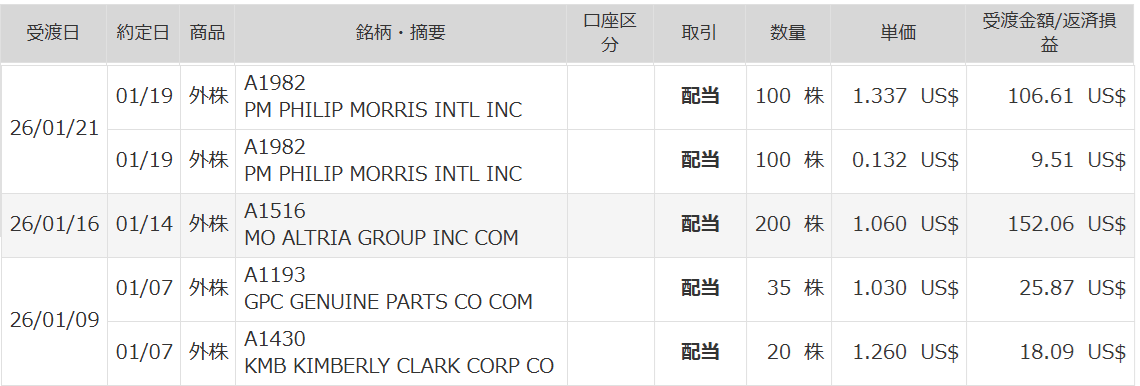 今月の米国株配当受取金は以下のとおりです。