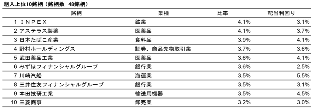 Tracers 日経平均高配当株50インデックス 構成銘柄