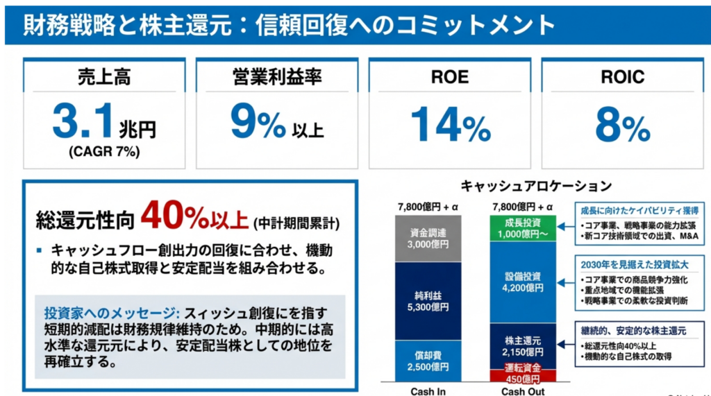 還元目標: 総還元性向40%以上を目安(中期経営計画期間累計)